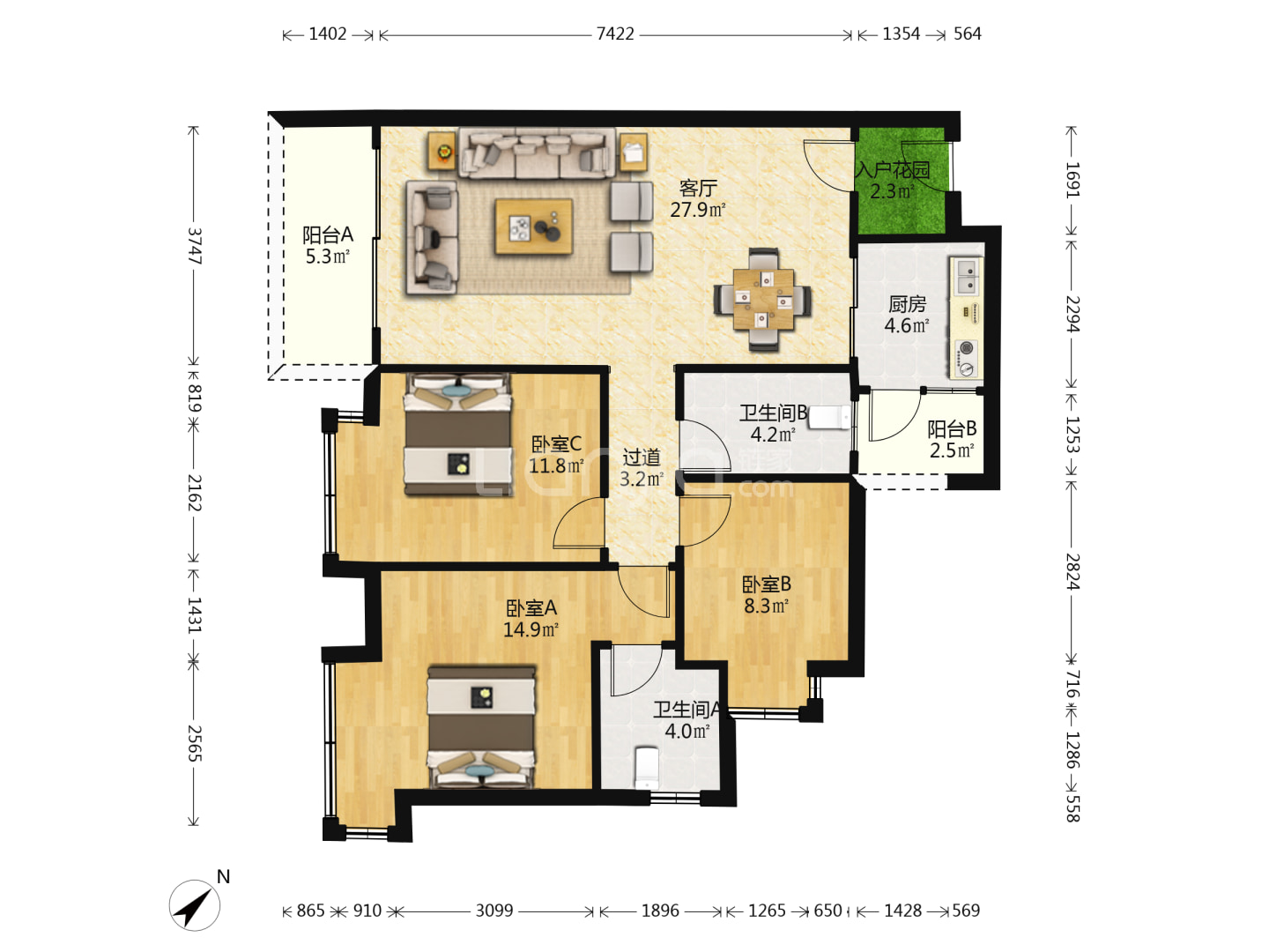 - 物业费:洋房2.75/平米,商铺/商墅5.0元/平米,公寓3.0元/平米